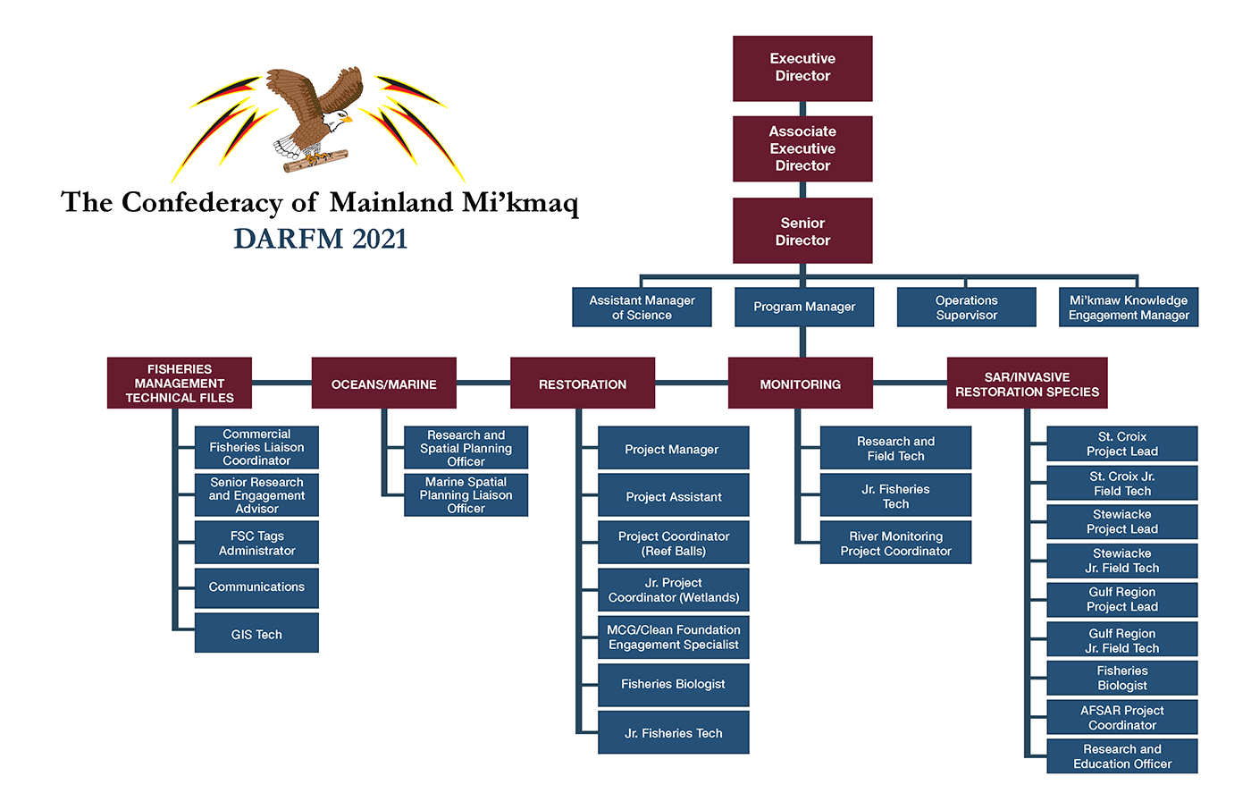 The Department of Aquatic Resources & Fisheries Management (DARFM) oversees the Mi’kmaw Conservation Group that operates programs and initiatives for our member communities. These programs focus on Species at Risk/Invasive Restoration Species, Monitoring, Restoration, Oceans and Marine, and Fisheries Management Technical Files.