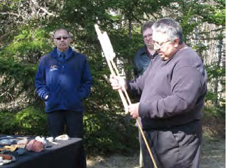 MDCC Program Development Officer Gerald Gloade demonstrates an atlatl (an ancient spear-thrower) at the Mi’kmawey Debert Interpretive Trail.